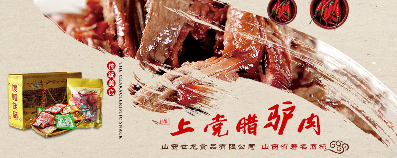 山西世龍食品有限公司是以“世龍”牌上黨臘驢肉系列產品為主導,集科研開發(fā)、良種繁育、基地建設、生產加工、市場營銷于一體的農業產業化國家重點龍頭企業、全國農業標準化示范區、全國食品行業優(yōu)秀龍頭企業、山西省農業產業化重點龍頭企業、山西省農產品加工“513”工程單位、山西省帶動貧困地區基地建設重點龍頭企業、山西省民營畜牧業示范基地、山西省質量信譽AAA級單位、山西省重合同守信用單位、山西省消費者協會誠信單位、山西省民營科技企業。